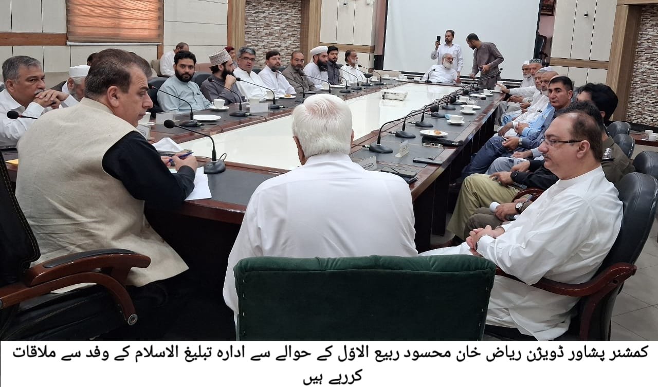 کمشنر پشاور ڈویژن ریاض خان محسود نے ماہ ربیع الاوّل کے لیے ادارہ تبلیغ الاسلام کے جلسوں، جلوسوں اور تقاریب کے لیے سیکورٹی اور دیگر انتظامات کے احکامات جاری کردیے ڈپٹی کمشنر آفس پشاور میں خصوصی کنٹرول روم قائم، ماہ ربیع الاول کے حوالے سے ادارہ تبلیغ الاسلام اور دیگر مکاتب فکر کے جلسوں، جلوسوں اور تقاریب کے لیے یکساں حفاظتی اور انتظامی سہولیات فراہم کی جائے گی، ربیع الاوّل کے جلسوں، جلوسوں اور تقاریب کے دوران بجلی کی بلا تعطل فراہمی یقینی بنائی جائے گی، اس کے ساتھ ساتھ جلوس کی گذرگاہوں اور تقاریب کے مقام کی صفائی، اسٹریٹ لائٹس کی تنصیب، کھلے مین ہول پر ڈھکن لگانے 12 ربیع الاوّل تک کنسٹرکشن اور نفرت انگیز مواد کی تشہیر پر پابندی اور اندرون شہر تعمیراتی کام پر پابندی ہوگی جس کے لیے ضلعی انتظامیہ اور دیگر متعلقہ اداروں کو ہدایات جاری کیے گئے ہیں، مذہبی اور ذہنی ہم آہنگی کے فروغ کے لیے بھی کوششیں جاری رکھیں جائے گی ان خیالات کا اظہار کمشنر پشاور ڈویژن ریاض خان محسود نے سید ظاہر علی شاہ اور سید فیاض علی شاہ کی قیادت میں ربیع الاول کے حوالے سے ادارہ تبلیغ الاسلام کے وفد کے اجلاس کی صدارت کرتے ہوئے کیا اجلاس میں ڈائریکٹر جنرل ریسکیو 1122 طیب عبداللہ، ایڈیشنل ڈپٹی کمشنر جنرل پشاور بابر تنولی، ایس پی سیکورٹی مجیب الرحمن، ایکسین پیسکو رحمان اللہ، چیف ایگزیکٹو ڈبلیو ایس ایس پی یاسر علی خان، ڈپٹی ڈائریکٹر کیپٹل میٹرو پولیٹن گورنمنٹ پشاور معاذ خان اور دیگر متعلقہ اداروں کے انتظامی افسران بھی موجود تھے اجلاس میں ادارہ تبلیغ الاسلام کے سربراہ نے اپنے جلسوں اور جلوسوں کا شیڈول کمشنر پشاور ڈویژن کے حوالے کیا وفد کی جانب سے مطالبات اور شیڈول کے تناظر میں فوری احکامات جاری کیے گئے کمشنر پشاور ڈویژن ریاض خان محسود نے وفد کو یقین دلایا کہ ربیع الاوّل کے تمام تر انتظامات کی وہ ازخود نگرانی کرینگے اور اس سلسلے میں وہ جلد شہر کا دورہ کرینگے