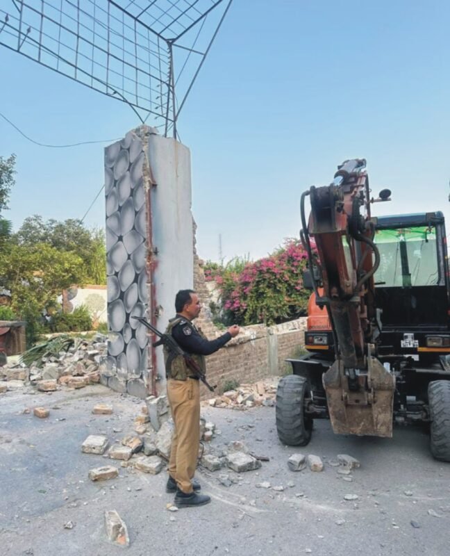 پولیس ٹیموں کی قبضہ مافیا سرغنہ لال شیر عرف لالے کے ڈیرے پر کارروائی،غیر قانونی ڈھانچوں اور مورچوں کو مسمار کردیا