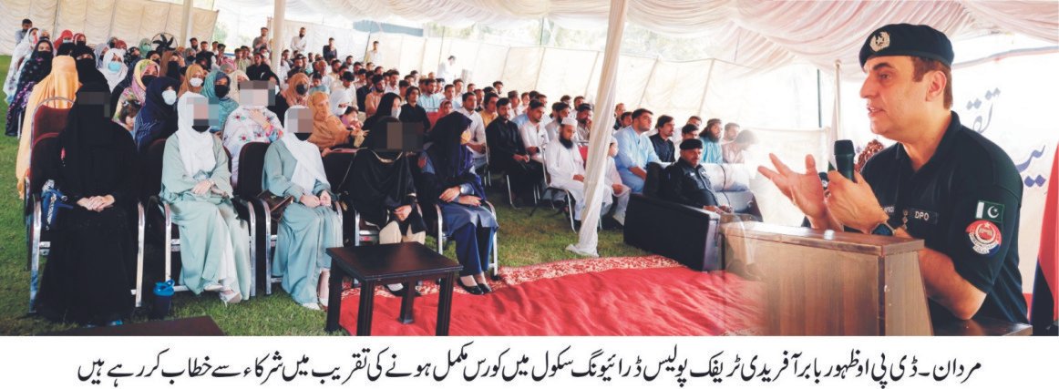 مردان(نمائندہ خیبرنامہ) ٹریفک پولیس ڈرائیونگ سکول مردان میں کورس نمبر 13 کی تقسیم اسناد کی پروقار تقریب کا انعقاد کیا گیا، جس کے مہمان خصوصی ڈی پی او مردان ظہور بابر آفریدی تھے۔کورس میں مجموعی طور پر 116 شرکاء نے کامیابی حاصل کی، جن میں 75 مرد اور 41 خواتین شامل تھیں۔ اس موقع پر پولیس کوٹے کے تحت 5 امیدواروں نے حصہ لیا جبکہ ایک شہید پولیس اہلکار کی بیٹی نے بھی کامیابی حاصل کی۔ڈی پی او مردان ظہور بابر آفریدی نے کامیاب شرکاء میں اسناد تقسیم کیں اور کہا کہ ٹریفک پولیس ڈرائیونگ سکول عوام کو معیاری تربیت فراہم کر رہا ہے جس کے نتیجے میں باشعور اور قانون کی پاسداری کرنے والے ڈرائیور تیار ہو رہے ہیں۔ انہوں نے خواتین کی شمولیت کو خوش آئند قرار دیتے ہوئے کہا کہ یہ معاشرتی ترقی اور مثبت تبدیلی کی علامت ہے۔تقریب میں ایس پی ٹریفک سریر خان، ڈی ایس پی ریافت خان، انچارج ڈرائیونگ سکول یاسر عرفات سمیت دیگر پولیس افسران اور سٹاف نے بھی شرکت کی۔