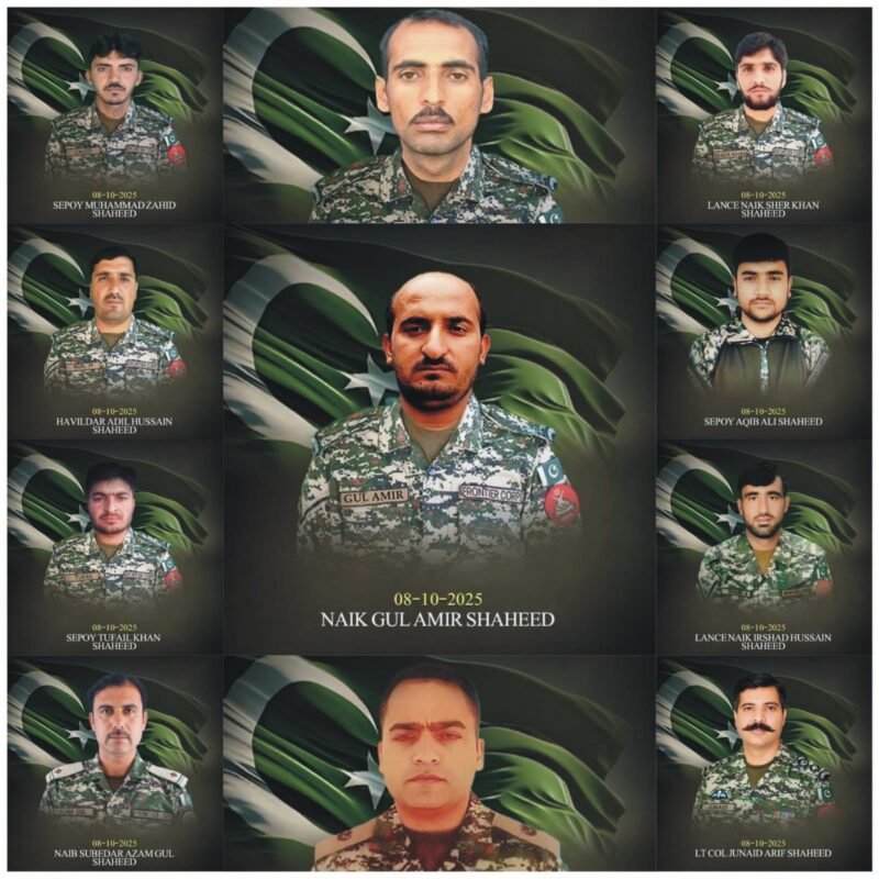 سیکیورٹی فورسز کاخفیہ معلومات پر آپریشن،لیفٹیننٹ کرنل جنید عارف،میجرطیب راحت سمیت9 جانباز سپاہی وطن پر قربان ہوگئے، شہادت پانے والوں میں نائب صوبیدار اعظم گل، نائیک عادل حسین، نائیک گل امیر، لانس نائیک شیر خان، لانس نائیک طالش فراز، لانس نائیک ارشاد حسین، سپاہی طفیل خان، سپاہی عاقب علی اور سپاہی محمد زاہد شامل