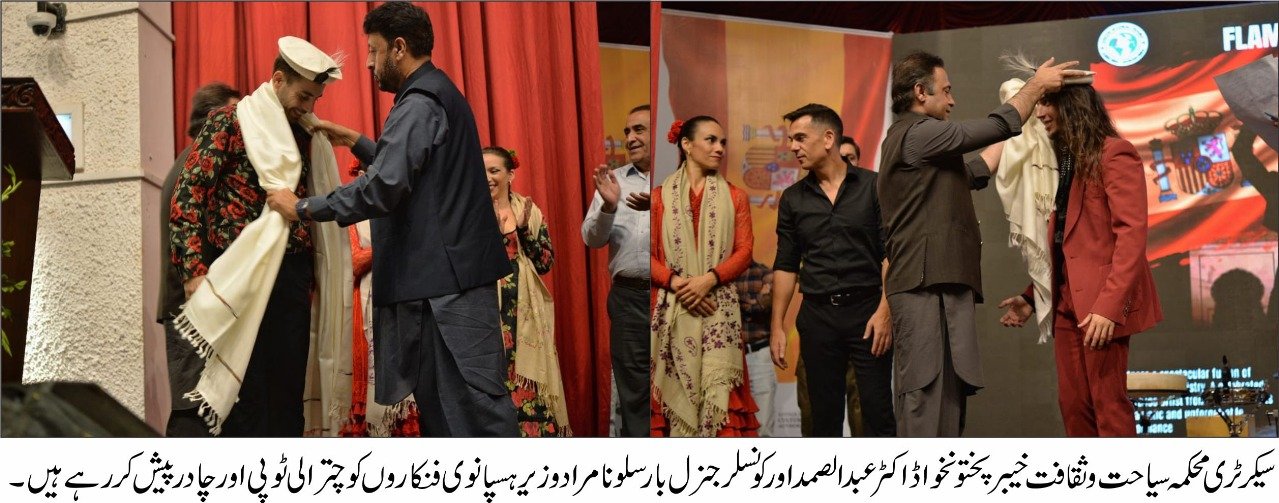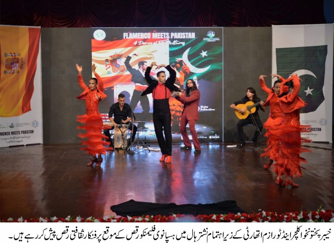پشاور(سٹاف رپورٹر)محکمہ سیاحت و ثقافت خیبرپختونخوا کے زیرانتظام خیبرپختونخواکلچراینڈٹورازم اتھارٹی کے تعاون سے نشترہال پشاور میں ہسپانیہ کے فنکاروں نے اندلس کی دلکش اور روح پرورفلیمنکو لوک ثقافتی موسیقی اور فن کا مظاہرہ کیا۔ اس موقع پر سیکرٹری محکمہ سیاحت، ثقافت، آثارقدیمہ و عجائب گھر خیبرپختونخوا ڈاکٹر عبدالصمد، ڈائریکٹر جنرل خیبرپختونخوا کلچراینڈٹورازم اتھارٹی حبیب اللہ عارف، کونسلر جنرل بارسلونا مراد وزیر، ڈائریکٹر ایڈمن و فنانس خیبرپختونخواٹورازم اتھارٹی عمر ارشد خان، ڈائریکٹر کلچر اجمل خان اور دیگر شخصیات موجود تھیں۔ اٹھارویں صدی میں اندلس کی دلکش وادیوں اور ابھرنے والا یہ فن دراصل تہذیبوں کے حسین سنگم سے جنم لینے والا نغمہ ہے جو کہ گیت، رقص اور گٹار نوازی تینوں سے مل کر انسانی جذبات، محبت اور کرب کو ایسی موسیقی میں ڈھالتا ہے جو دل کو چھو کرروح میں اتر جاتی ہے۔ ایسی ہی محفل گزشتہ روز نشترہال پشاور میں سجائی گئی جہاں ہسپانیہ سے آئے فنکاروں نے فلیمنکو رقص کے شاندار فن کا مظاہرہ پیش کیا جس میں بانسری، گٹارنوازی اور رقص نے نشترہال پشاور میں آئی فیمیلز کو خوب محظوظ کیا۔ تقریب میں سیکرٹری محکمہ سیاحت ڈاکٹر عبدالصمد نے خطاب کرتے ہوئے کہاکہ کئی دہائیوں کے بعد نشترہال پشاور میں آج فیمیلز کو ثقافتی محفل میں جمع ہوتے دیکھا ہے جو کہ پشاور میں ثقافتی سرگرمیوں کے انعقاد کیلئے خوش آئند ہے۔انہوں نے کہاکہ جلد نشترہال میں مشہور جشن خیبر کا انعقاد کرنے جا رہے ہیں جوکہ پہلے وقتوں میں یہاں منعقد ہوا کرتا تھا۔ اس موقع پر کونسلر جنرل بارسلونا مراد وزیر نے کہاکہ ان فنکاروں کو پشاورسمیت پاکستان بھر سے بہت پیار ملا اور یہاں کی مہمان نوازی سے بہت خوش ہوئے۔ ایسی سرگرمیوں کے انعقاد سے دونوں ممالک کی ثقافت کو دنیا کے سامنے لانے اور فروغ دینے کا باعث بنتی ہے۔ڈی جی ٹورازم اتھارٹی حبیب اللہ عارف نے گفتگو کرتے ہوئے کہاکہ گزشتہ دو دہائیوں سے شدت پسندی کے باعث بڑی سطح پر سرگرمیوں کا انعقاد ممکن نہیں تھا۔نشترہال میں ہسپانوی رقص نے نہ صرف ثقافتی سرگرمیوں کا بحال کیا بلکہ یہاں کی فیمیلز کا رخ ایک مرتبہ پھر نشترہال کی جانب کردیا ہے۔تقریب کے آخر میں ہسپانیہ کے فنکاروں کو چترالی شال اور ٹوپیاں پہنائی گئیں۔