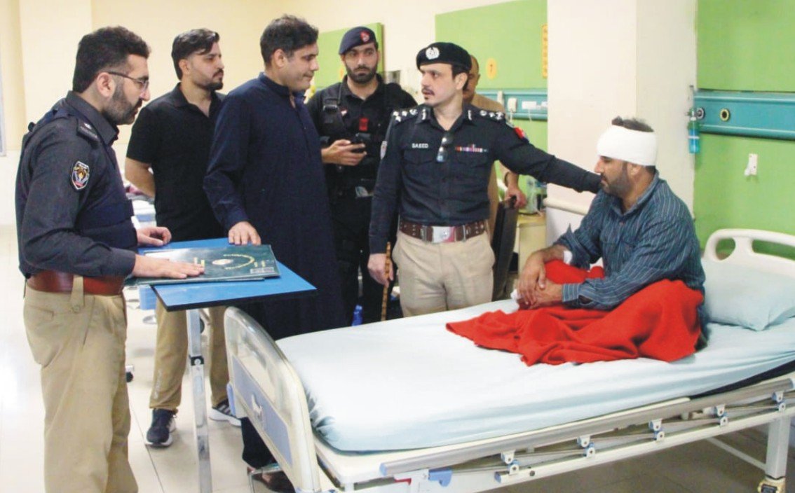 پشاور (کرائم رپورٹر) سی سی پی او پشاور ڈاکٹر میاں سعید احمد نے سی ایم ایچ ہسپتال کا دورہ کیا،انہوں نے سی ٹی ڈی تھانہ میں پیش آنے والے واقعہ میں زخمی پولیس اہلکار زیت اللہ کی عیادت کی۔اس موقع پر ایس ایس پی آپریشنز مسعود احمد، ایس پی کینٹ احتراز خان اور دیگر پولیس افسران بھی موجود تھے۔سی سی پی او پشاور ڈاکٹر میاں سعید احمد نے زخمی اہلکار کی جلد صحتیابی کیلئے دعا کی اور علاج معالجے کے بہترین انتظامات کو یقینی بنانے کی ہدایت کی۔سی سی پی او ڈاکٹر میاں سعید احمد نے کہا کہ پولیس فورس کی قربانیاں ہمیشہ فخر کا باعث رہیں گی، اور ہر مشکل گھڑی میں اپنے جوانوں کے شانہ بشانہ کھڑے ہیں۔