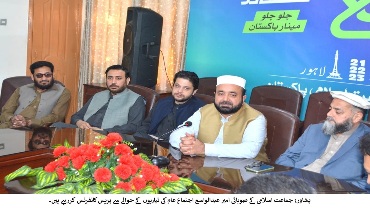 یہ اعلان امیر جماعتِ اسلامی خیبرپختونخوا وسطی عبدالواسع نے اجتماعِ عام کی تیاریوں کے حوالے سے منعقدہ جائزہ اجلاس میں شرکت کے بعد کیا۔ وہ مرکز اسلامی پشاور میں صوبائی جنرل سیکرٹری و سابق رکنِ قومی اسمبلی صابرحسین اعوان اور نائب امیر میاں صہیب الدین کاکاخیل کے ہمراہ پشاور کے صحافیوں سے خصوصی گفتگو کر رہے تھے۔اس موقع پر صوبائی ڈائریکٹر میڈیا احمد فرقان خلیل، نورالواحد جدون اور ضلع پشاور کے ترجمان و سابق ناظم طارق متین بھی موجود تھے۔
