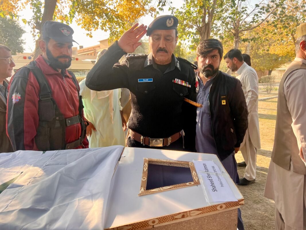 شہداء کی نمازِ جنازہ سرکاری اعزاز کے ساتھ بنوں کینٹ میں ادا کی گئی جس میں چیف سیکرٹری خیبر پختونخوا شہاب علی شاہ، آئی جی پی ذوالفقار حمید، ریجنل پولیس آفیسر سجاد خان، کمشنر بنوں خالد محمود، بریگیڈیئر عمیر خان نیازی، ڈی پی او بنوں یاسر آفریدی، ڈی پی او شمالی وزیرستان سجاد حسین، ڈپٹی کمشنر محمد فہیم خان، ایس پی سی ٹی ڈی فضل واحد سمیت دیگر سول و عسکری حکام نے شرکت کی۔ شہداء کے تابوتوں کو گارڈ آف آنر پیش کیا گیا اور پھولوں کی چادریں چڑھائی گئیں۔