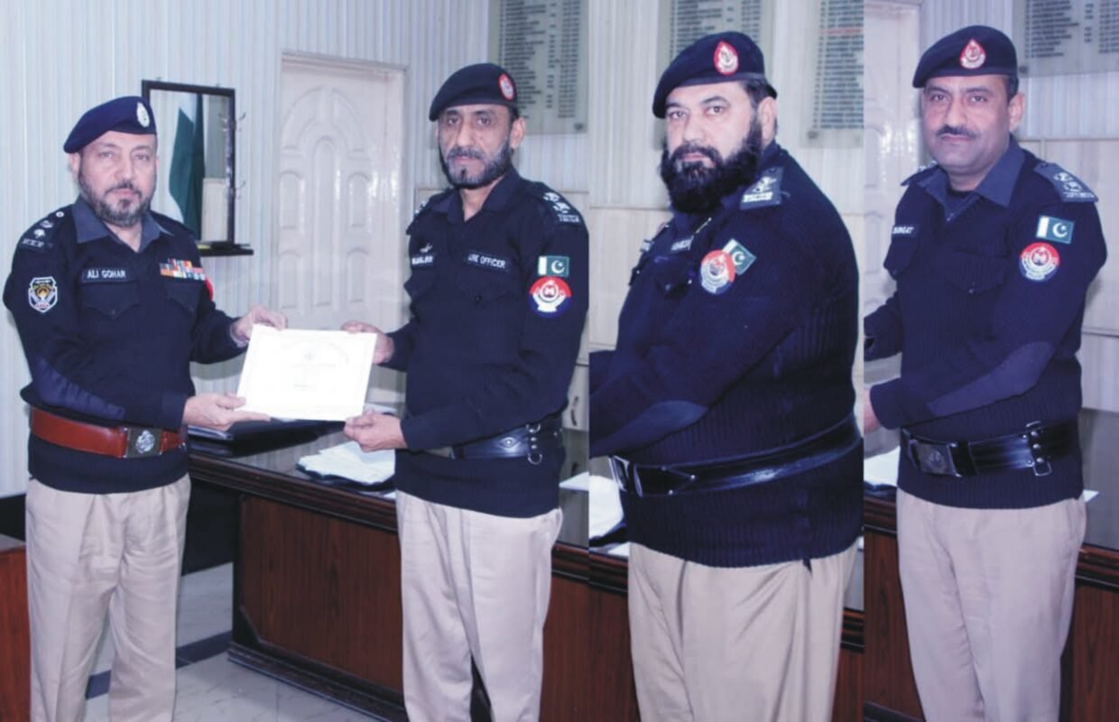 ایس پی ہیڈکوارٹر علی گوہر نے لائن اہلکاروں کو بہترین ڈیوٹی سرانجام دینے پر توصیفی اسناد اور نقد انعامات سے نوازا